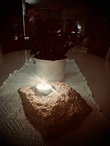 Denne lysestaken er laget av massiv granitt, bearbeidet for hånd med respekt for steinens naturlige form. Overflaten er grov og ujevn, slik naturen har formet den. Lyset får spille mot steinen og skaper et stille, varmt uttrykk.